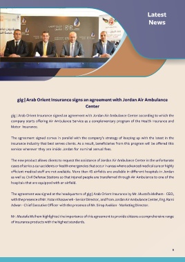 gig | Arab Orient Insurance signed an agreement with Jordan Air Ambulance Center according to which the