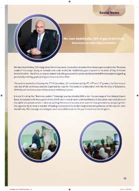 Mr. Isam Abdelkhaliq, CEO of gig | Arab Orient Insurance, received an invitation from Injaz to participate in the “Business
