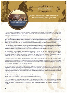 The General Assembly of gig | Arab Orient Insurance held its annual General Assembly Meeting for the year 2014, on